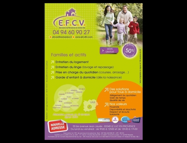 E. F.C. V. est une service d'Aide et d'Accompagnement à domicile, implantée sur le territoire depuis plus 26 Ans.