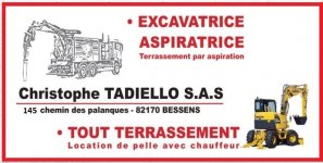 FLORES TP1585 Chemin De Lalande82170 - BESSENS TADIELLO CHRISTOPHE SAS145 Chemin Palanques82170 - BESSENS Clientèle visée : Particuliers - Professionnels Type d'entreprise : Entreprise de travaux publics DOMAINES D'INTERVENTION : Création allée - route - Démolition - Empierrement - Travaux assainissement - Travaux de rénovation - Travaux voiries et réseaux - Travaux terrassement