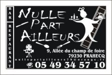 NULLE PART AILLEURS9 allee champ de foire79230 - PRAHECQ Jours d'ouverture: du mardi midi au vendredi midi en formule 16€ entrée plat dessert Plat formule 12€