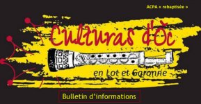 CULTURAS D' ÒC EN LOT ET GARONNE10 Rue Ledru Rollin - Centre Municipal47000 - AGEN Culturas d'Òc en Lot et Garonne : musique et danses traditionnelles de Gascogne et d'ailleurs... ateliers de danses, de chant et ateliers d'apprentissage de violon, accordéon et cornemuse landaise..musique d'ensemble.. organisation de stages de danses, de chants, de cornemuse landaise et de bals. Propose tous les ans, pour le week-end de la Pentecôte, une grande fête itinérante dans le département, de la danse et de la musique appelée Le Campestral.